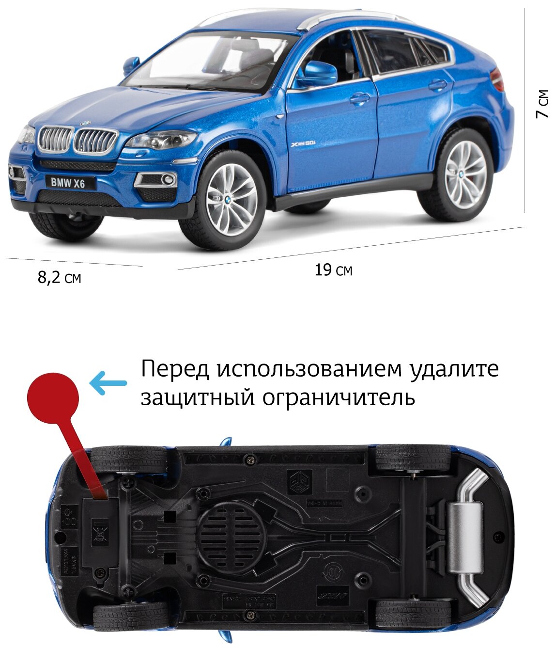 Модель машины Автопанорама 1:26 BMW X6, синий, свободный ход колес, открываются двери, капот, багажник, свет, звук (JB1200121)
