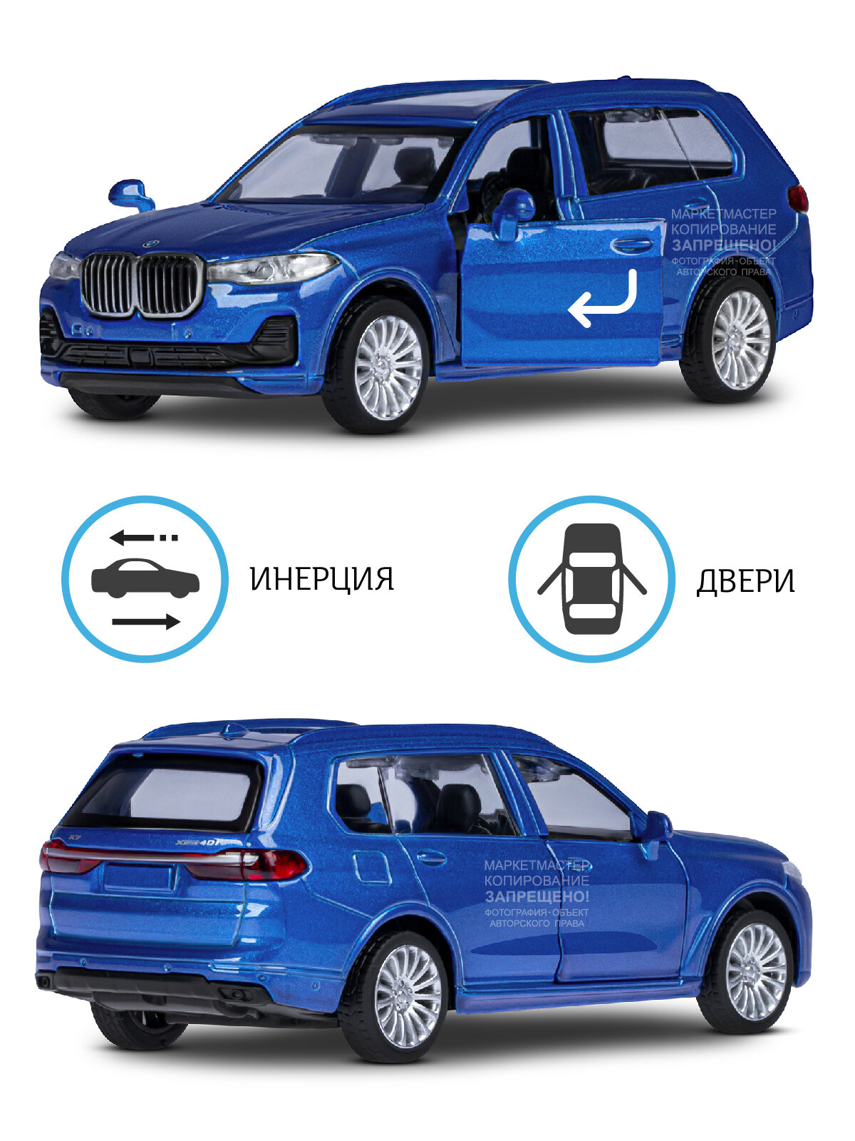 Машинка металлическая Автопанорама 1:44, BMW X7, синий, инерция, открываются двери, в коробке, 17,5х12,5х6,5 см (JB1251257)