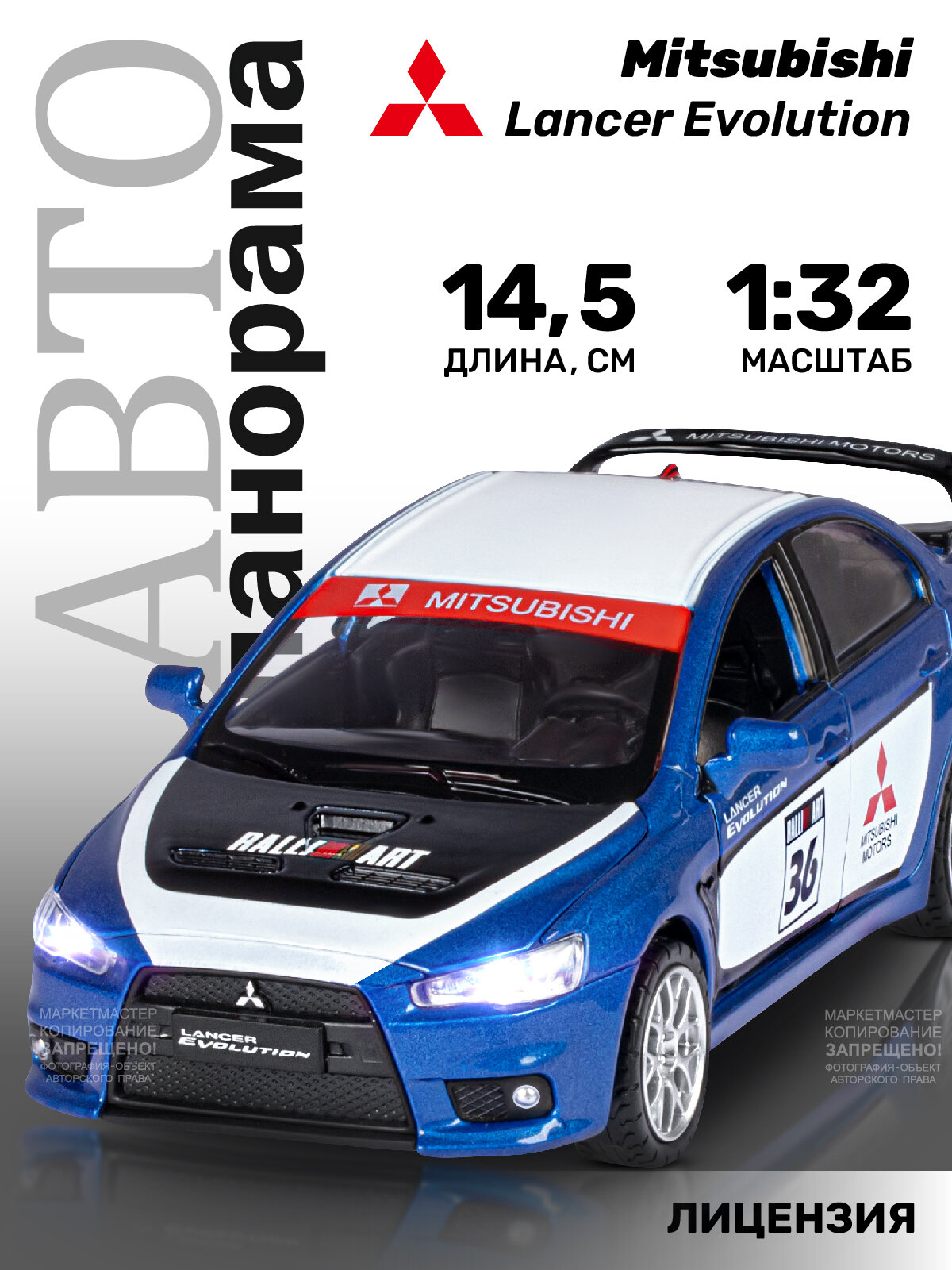 Машина Автопанорама 1:32 Mitsubishi Lancer Evolution синий JB1251472 автопанарама