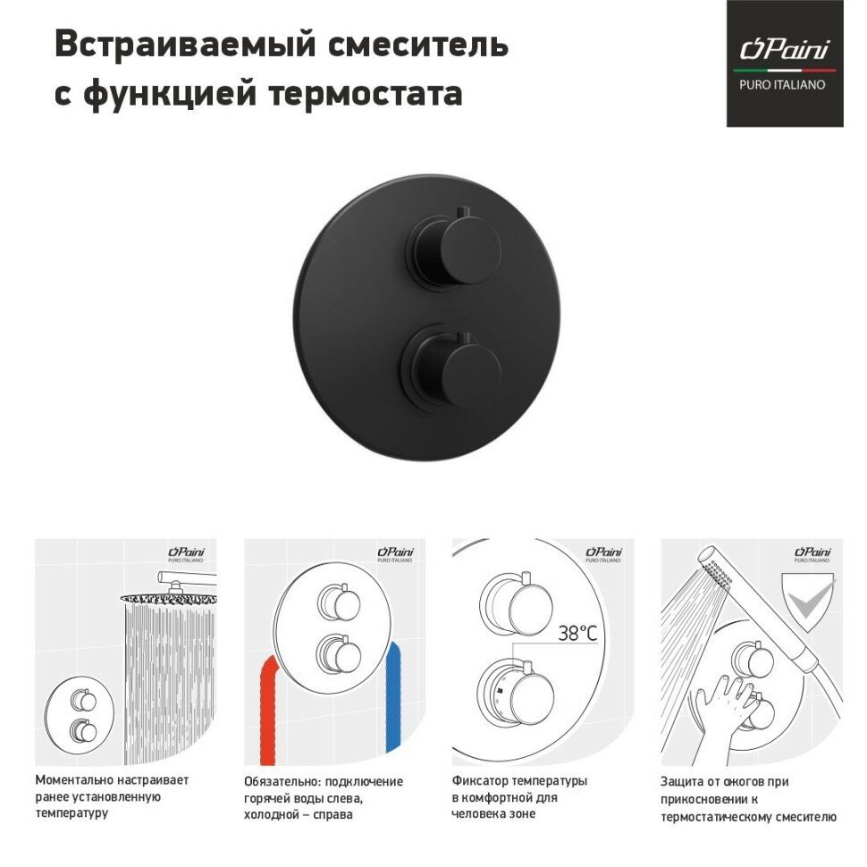 Смеситель для ванны Paini Cox встраиваемый с термостатом, черный матовый