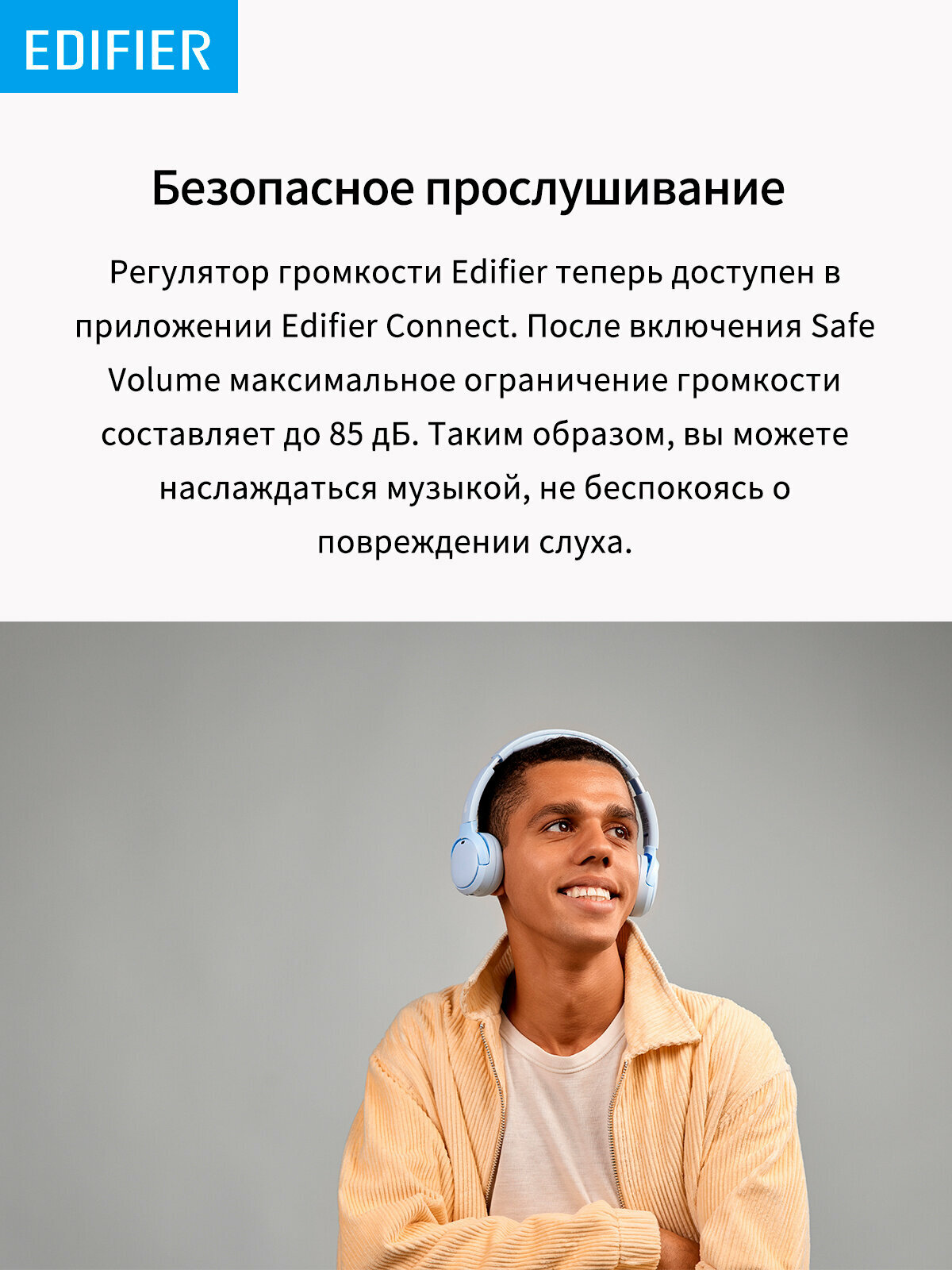 Беспроводные полноразмерные наушники Edifier WH500, голубой интересное: