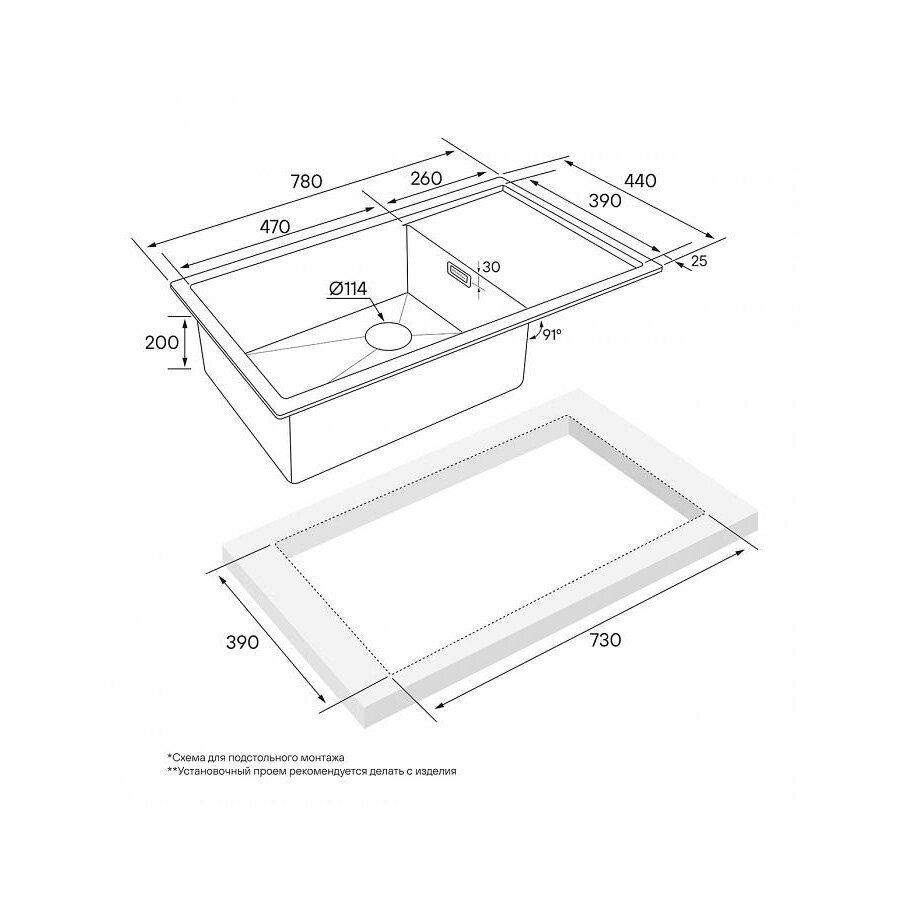 Мойка нерж. сталь WING, PM217844-BG, брашированное золото, 780х440мм, Paulmark
