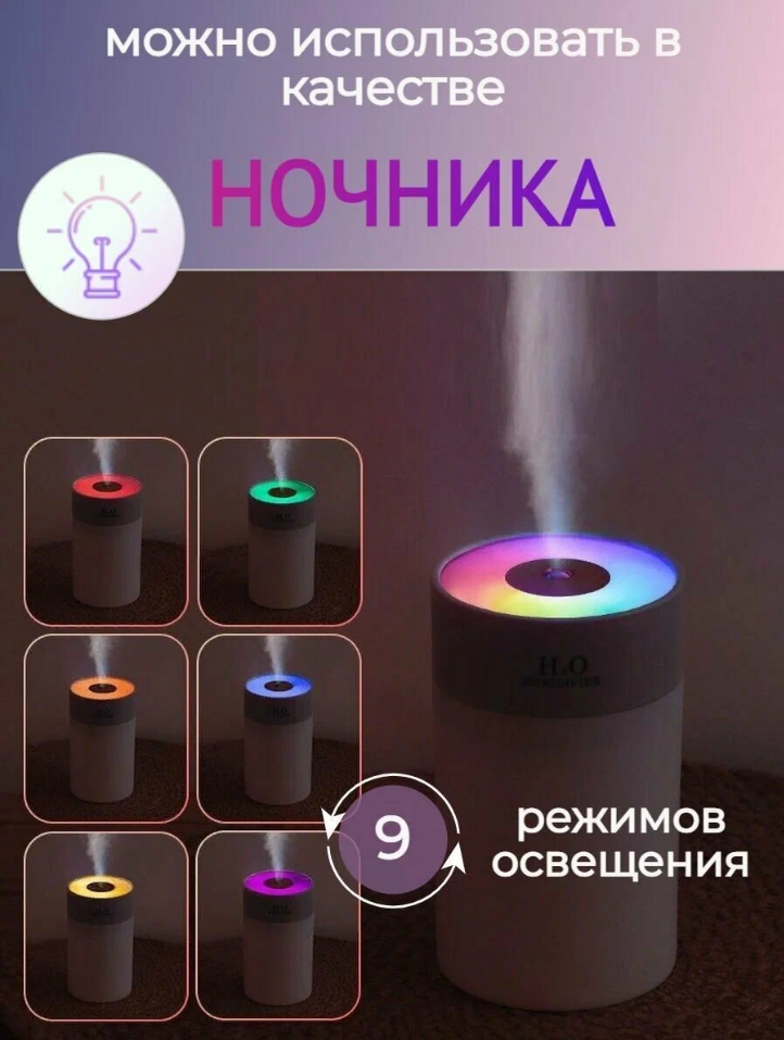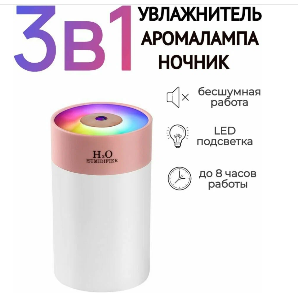 Парогенератор, аромадиффузор - ночник Humidifier H2O H-5, Увлажнитель воздуха, розовый интересное: