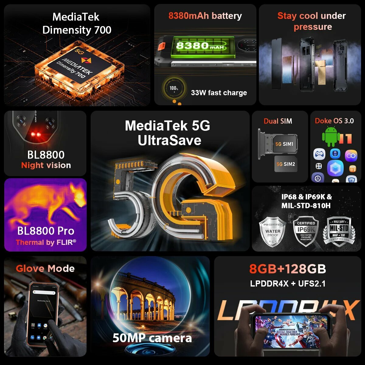 Blackview BL8800 Pro (8GB, 128GB) Orange