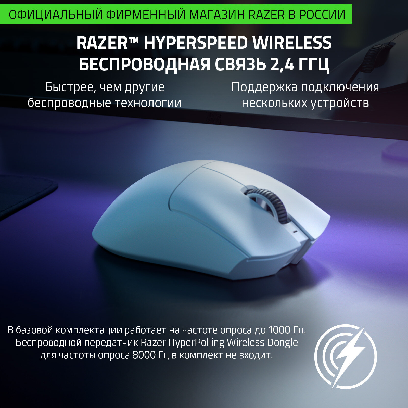 | Дополнительная информация | частота опроса до 4000 Гц возможна с беспроводным передатчиком Razer HyperPolling Wireless Dongle (продается отдельно) |
