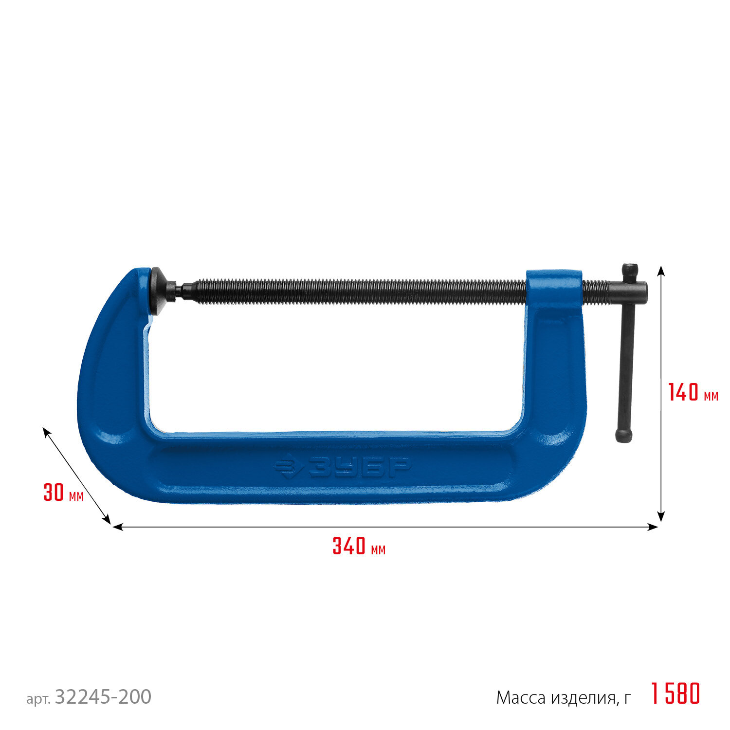 Струбцина тип G 200 мм, ЗУБР 32245-200_z02