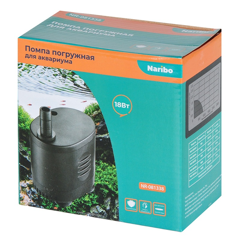 Naribo Помпа погружная Naribo 18 Вт, 830 л/ч, h.max 1,7 м