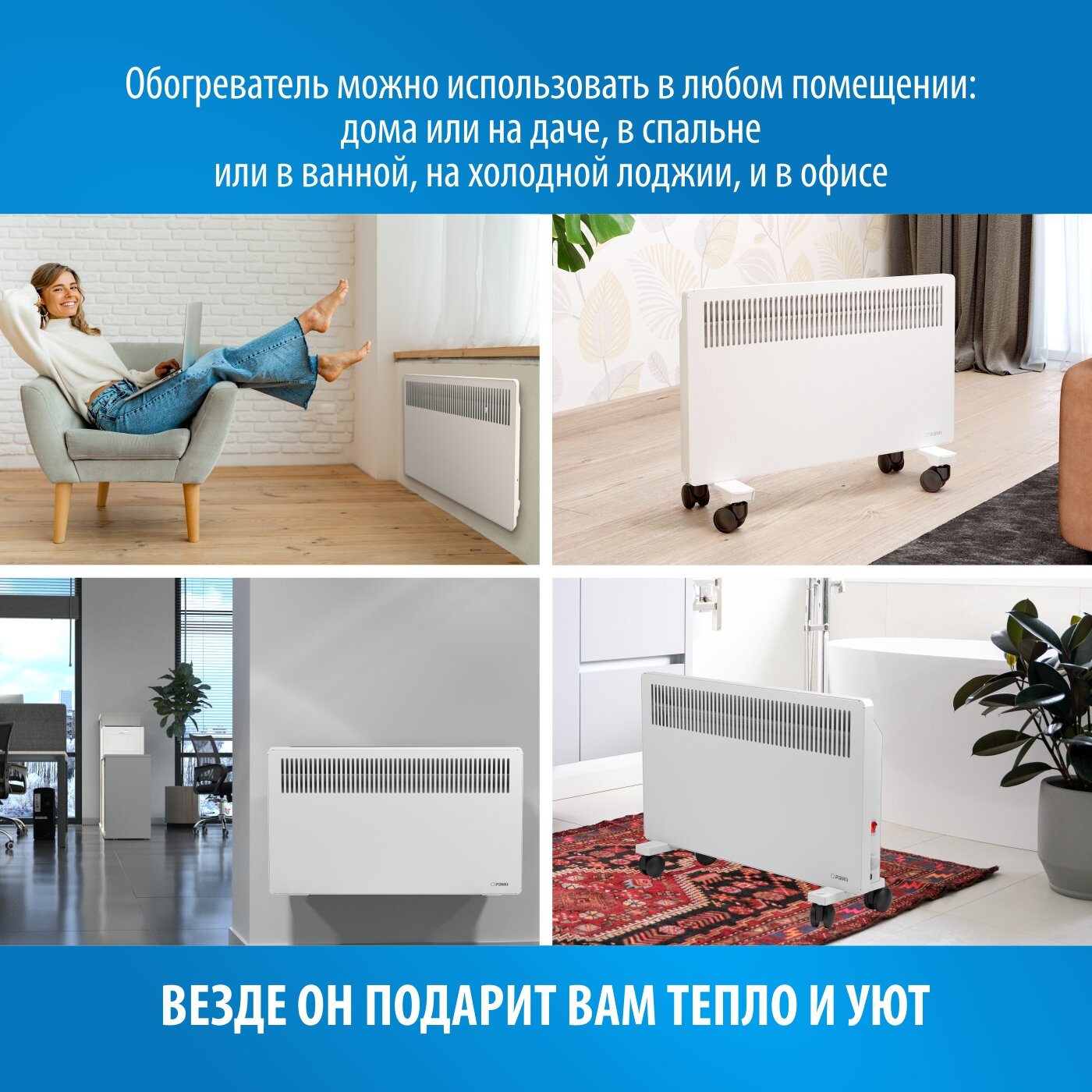 | Подробная комплектация | конвектор,кронштейн,фурнитура для установки на стену,колеса |