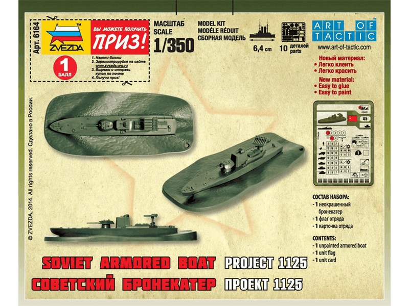 6164 Звезда Советский бронекатер Проект 1125 (1:350) интересное: