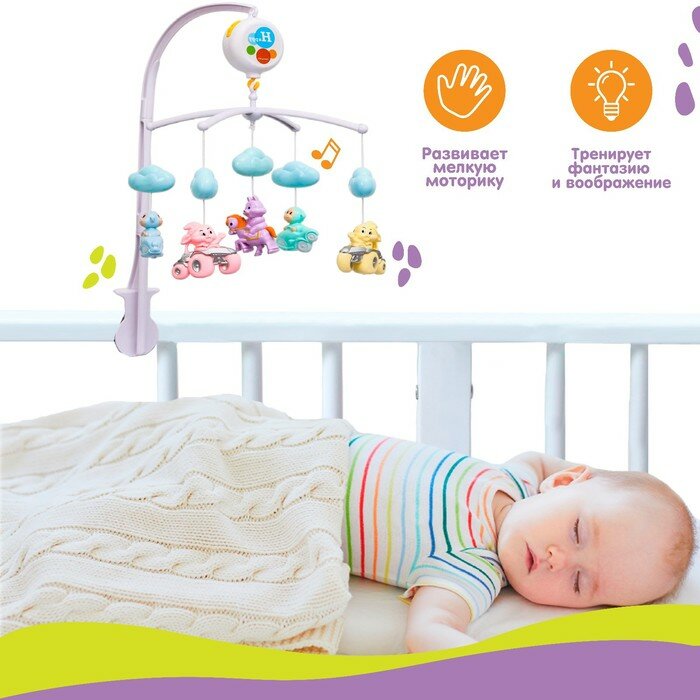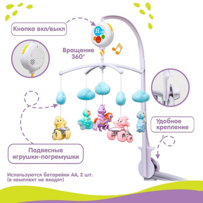 Мобиль музыкальный «Облака. Транспорт», работает от батареек интересное: