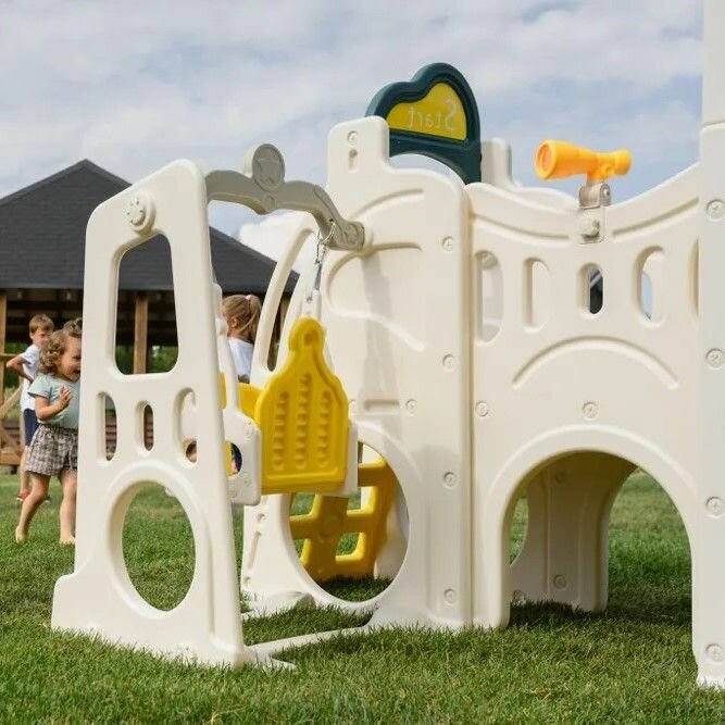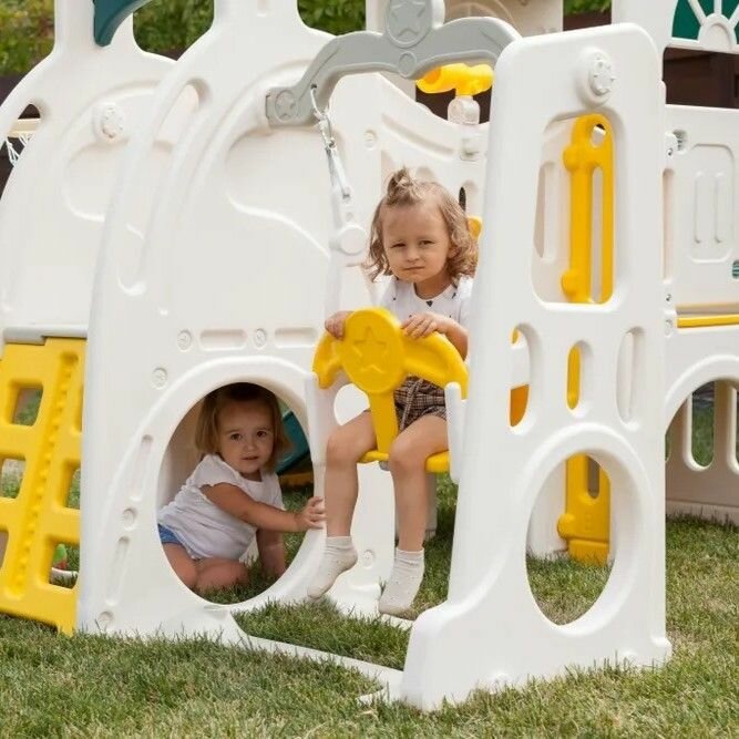СохранитьИгровой комплекс UNIX Kids Playhouse для детей с горкой и качелями, для дома и улицы, зеленый, желтый интересное: