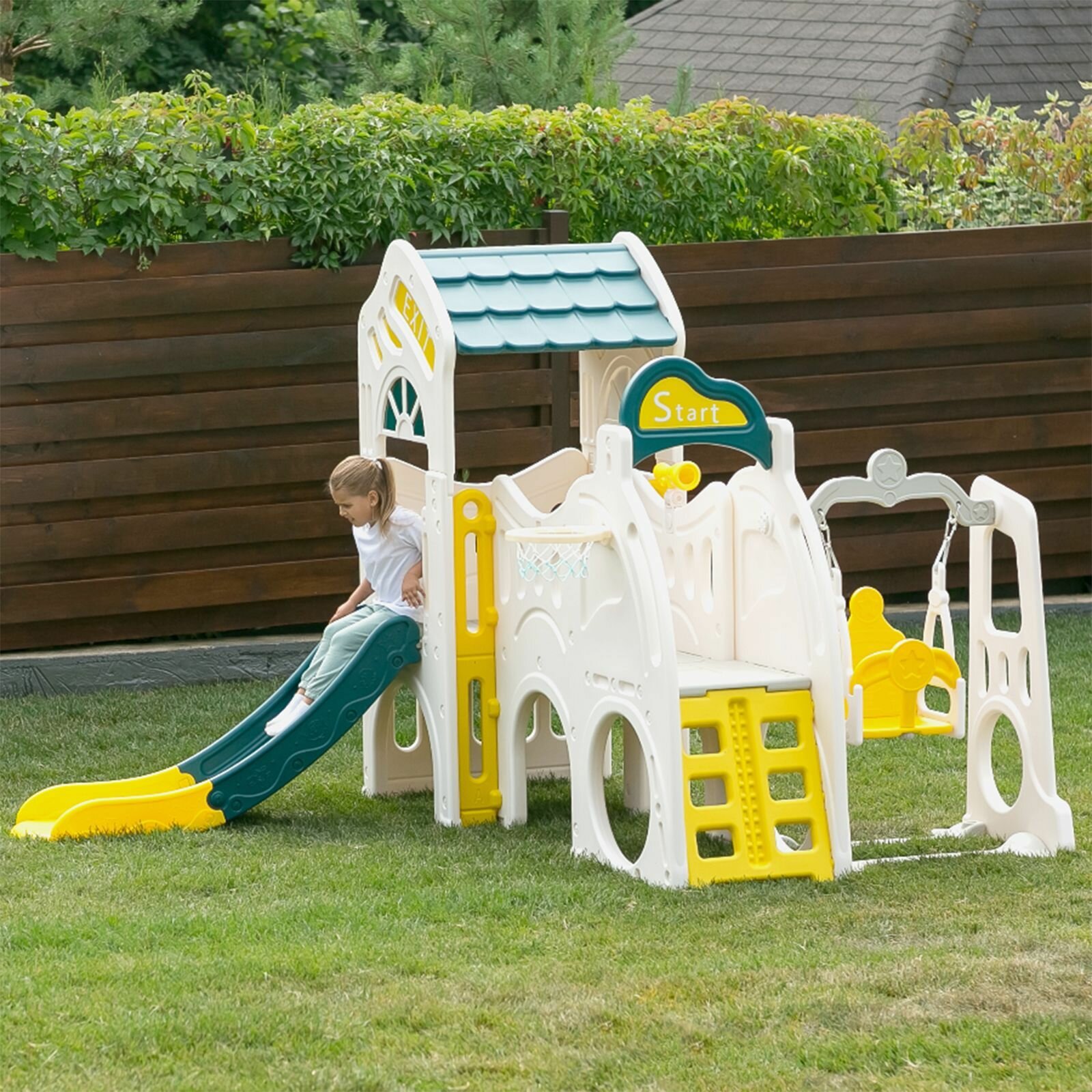 Купить Игровой комплекс UNIX Kids Playhouse для детей с горкой и качелями, для дома и улицы, зеленый, желтый