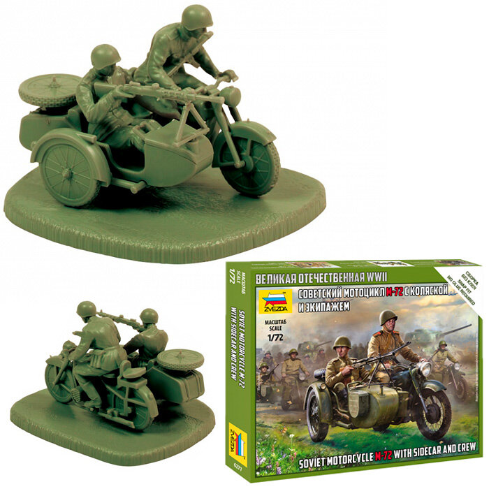 Сборная модель «Советский мотоцикл М-72 с коляской и экипажем»,Звезда, 1:72, (6277)