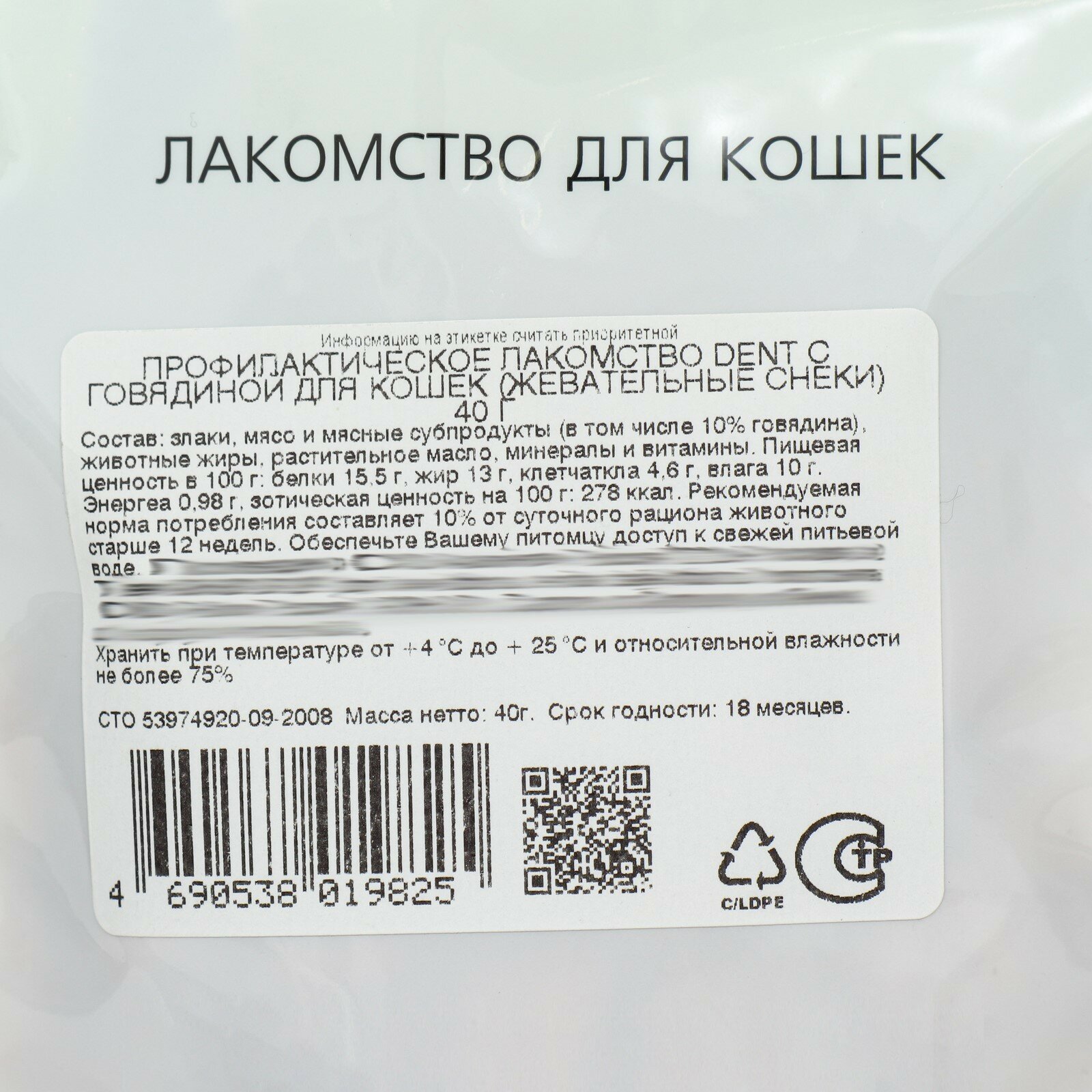 Лакомство титбит для кошек, профилактическое Dent с говядиной (Жевательные снеки) 40 г