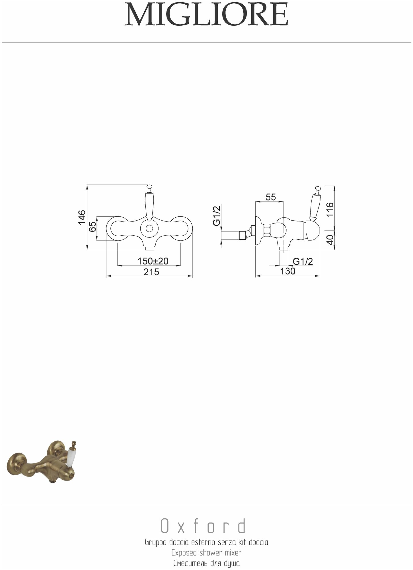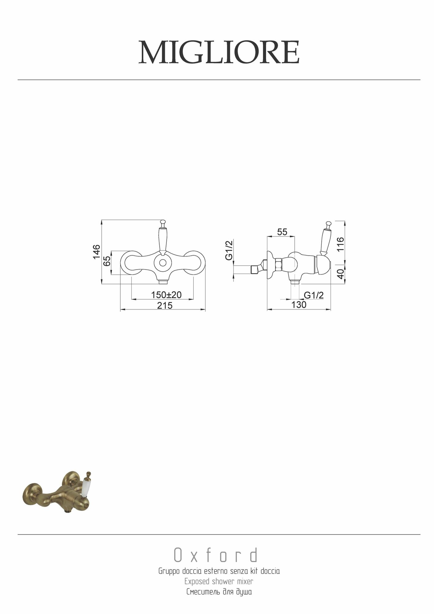Migliore OXFORD Смеситель для душа моноком. внешний, выход М1/2", ручка белая, бронза 19089 интересное: