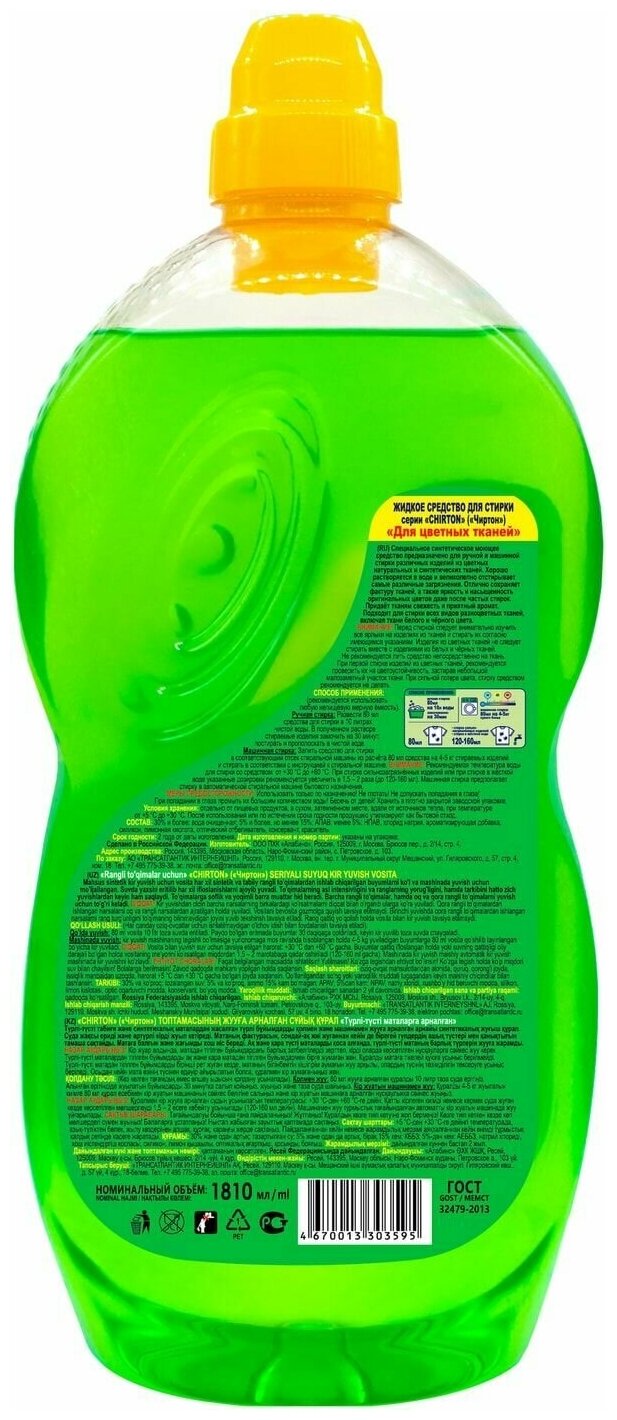 СохранитьЖидкость для стирки Chirton для цветных тканей Альпийские луга, 1.81 л, бутылка интересное: