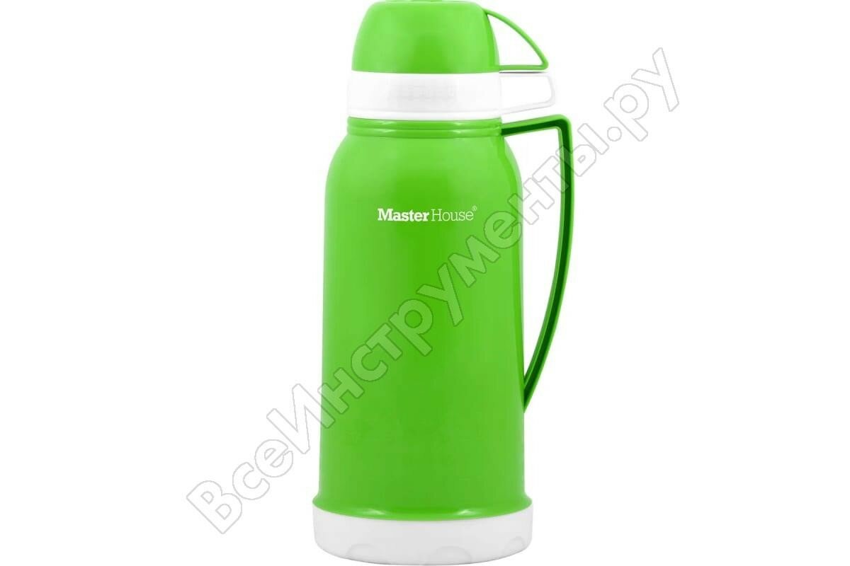 Купить Термос Венеция стекл.колба/пластик узкое горло, 1,65л, чашки 2шт, зеленый, арт.60331 Master House