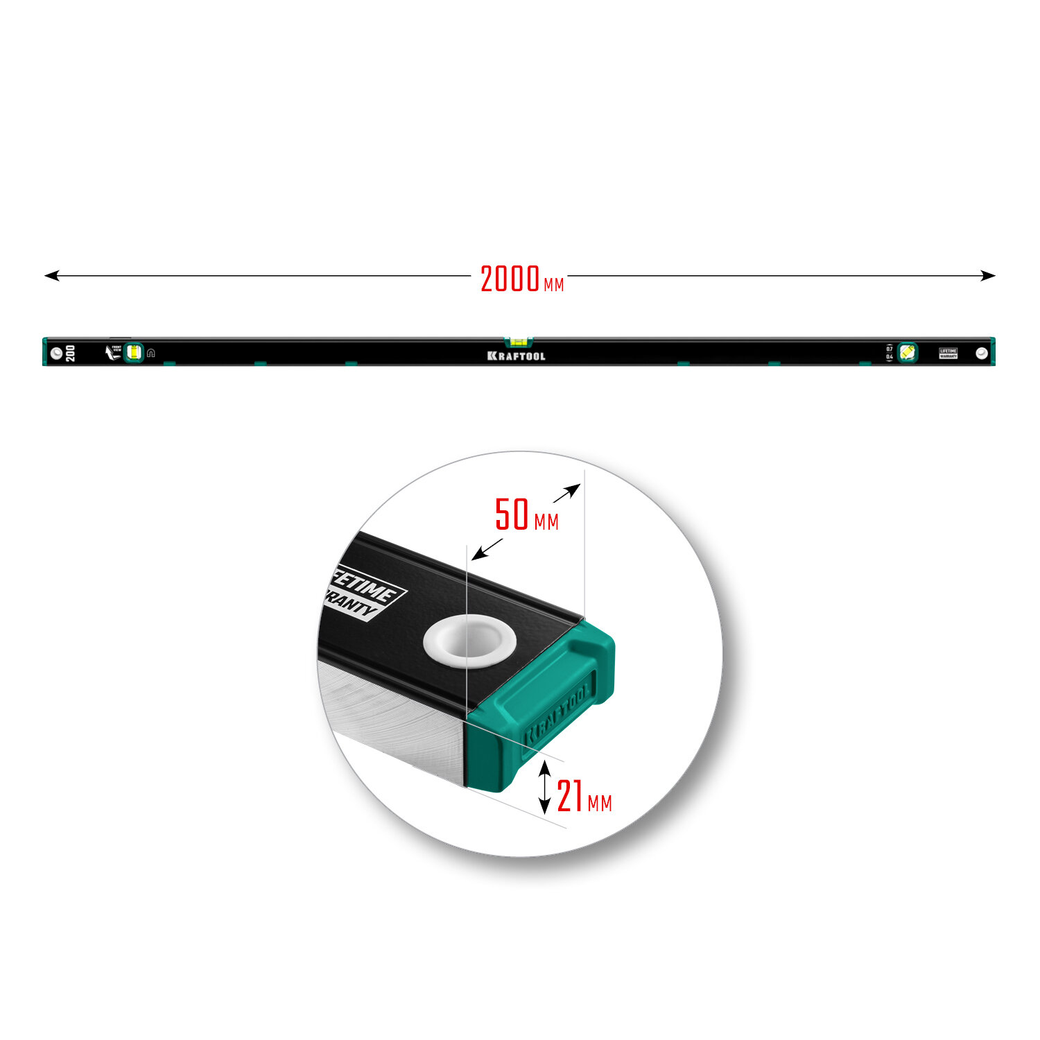 KRAFTOOL 2000 мм, усиленный профиль, с зеркальным глазком, магнитный уровень (34785-200)