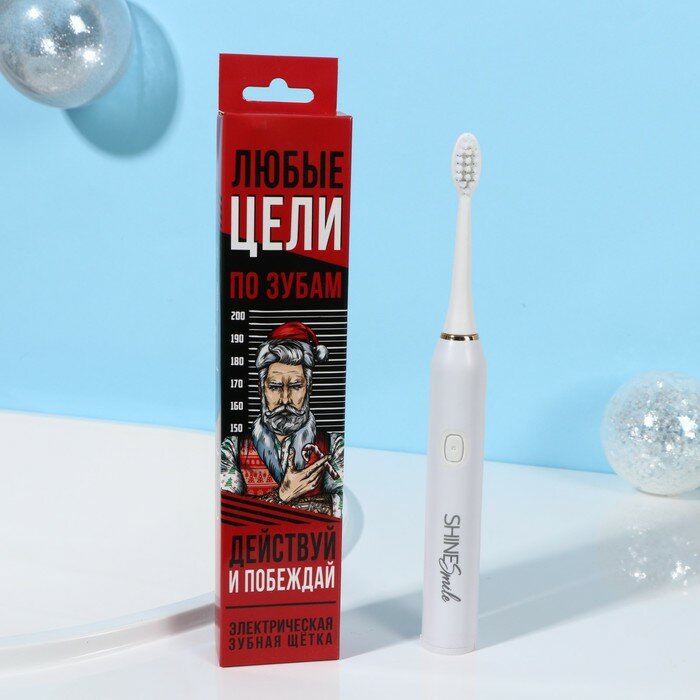 Электрическая новогодняя зубная щётка Новый год: Цели любые по зубам, 3 насадки, вибрационная Сима .