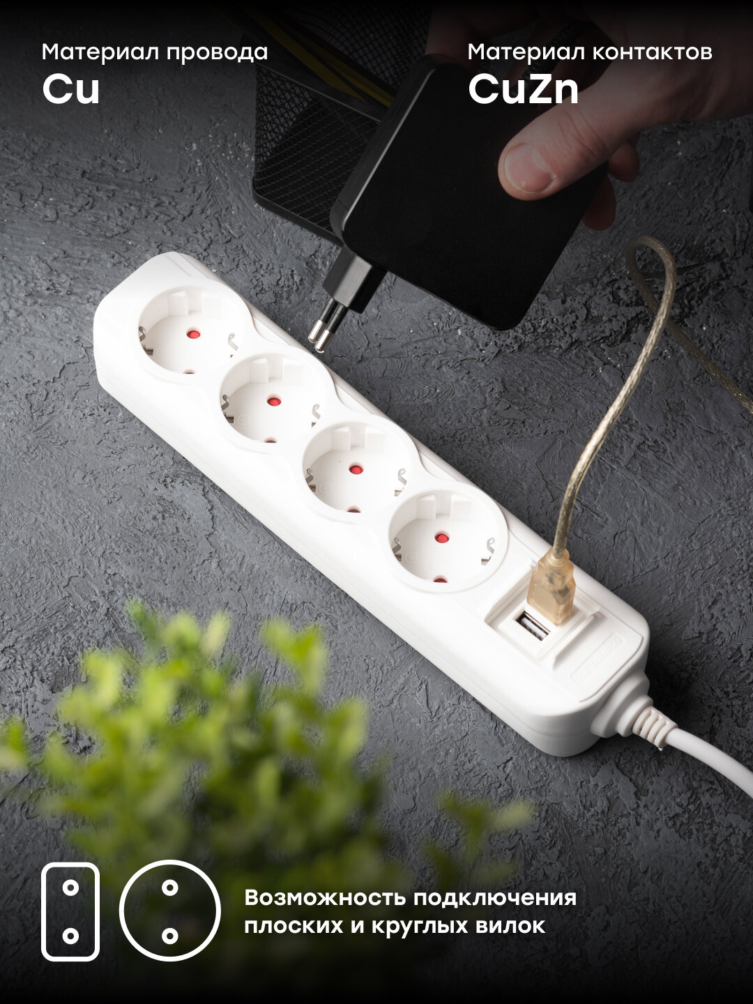 | Плюсы: | Можно удлинить электросеть! Можно воткнуть сразу несколько потребителей! |