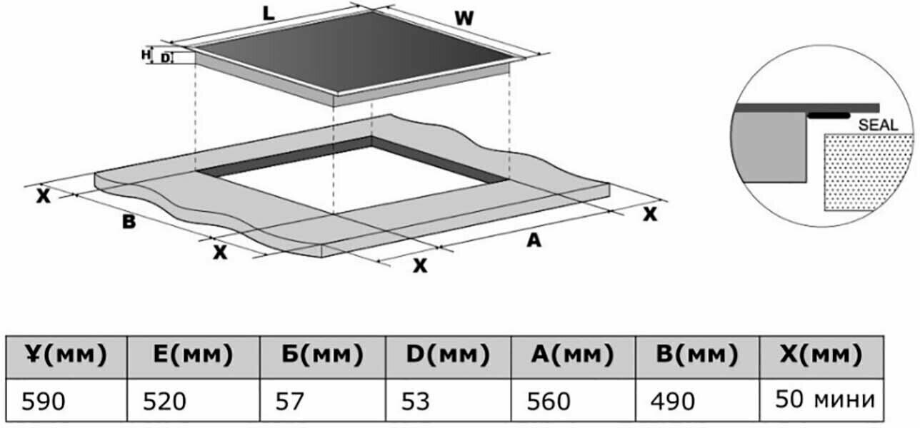 | Ширина для встраивания | 56 см |