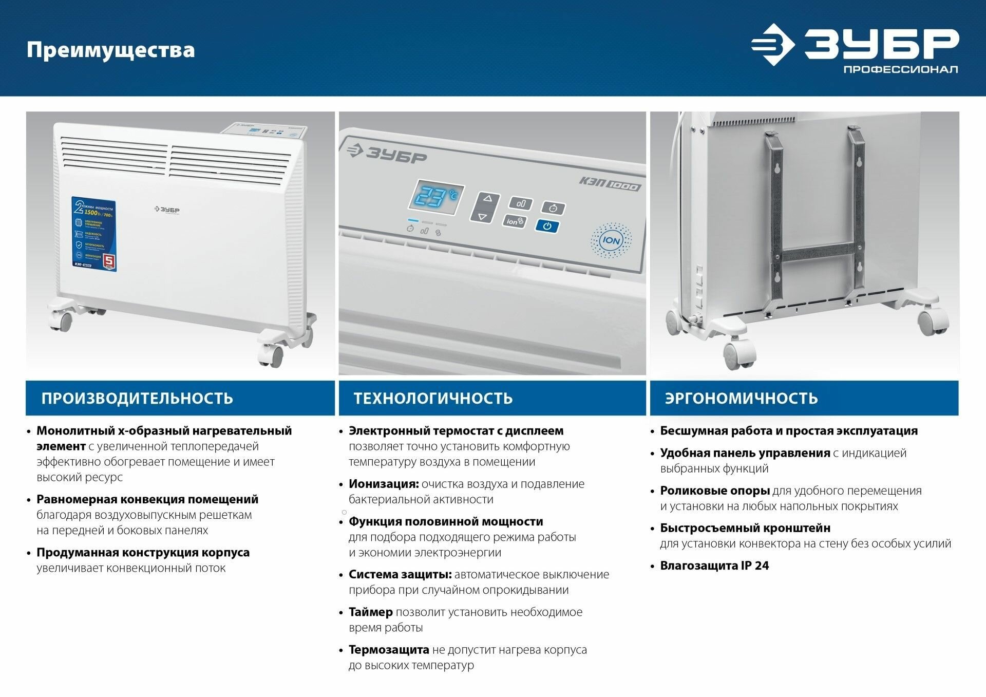 Зубр Электрический конвектор ЗУБР, 2 кВт, Профессионал интересное: