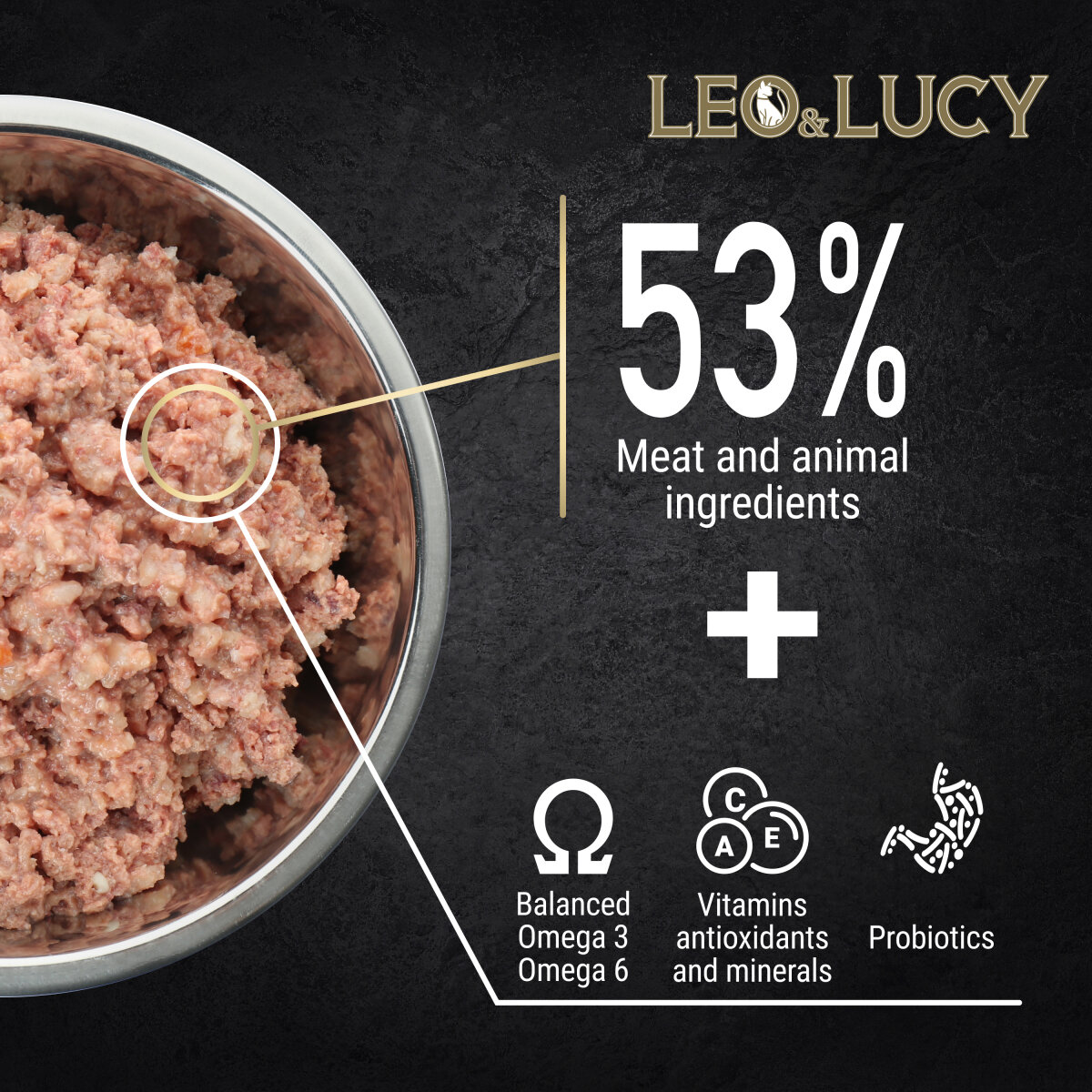 LEO&LUCY влажный холистик корм консервированный полнорационный - паштет для взрослых собак всех пород с ягненком, грушей и биодобавками, подходит пожилым, 400 г.