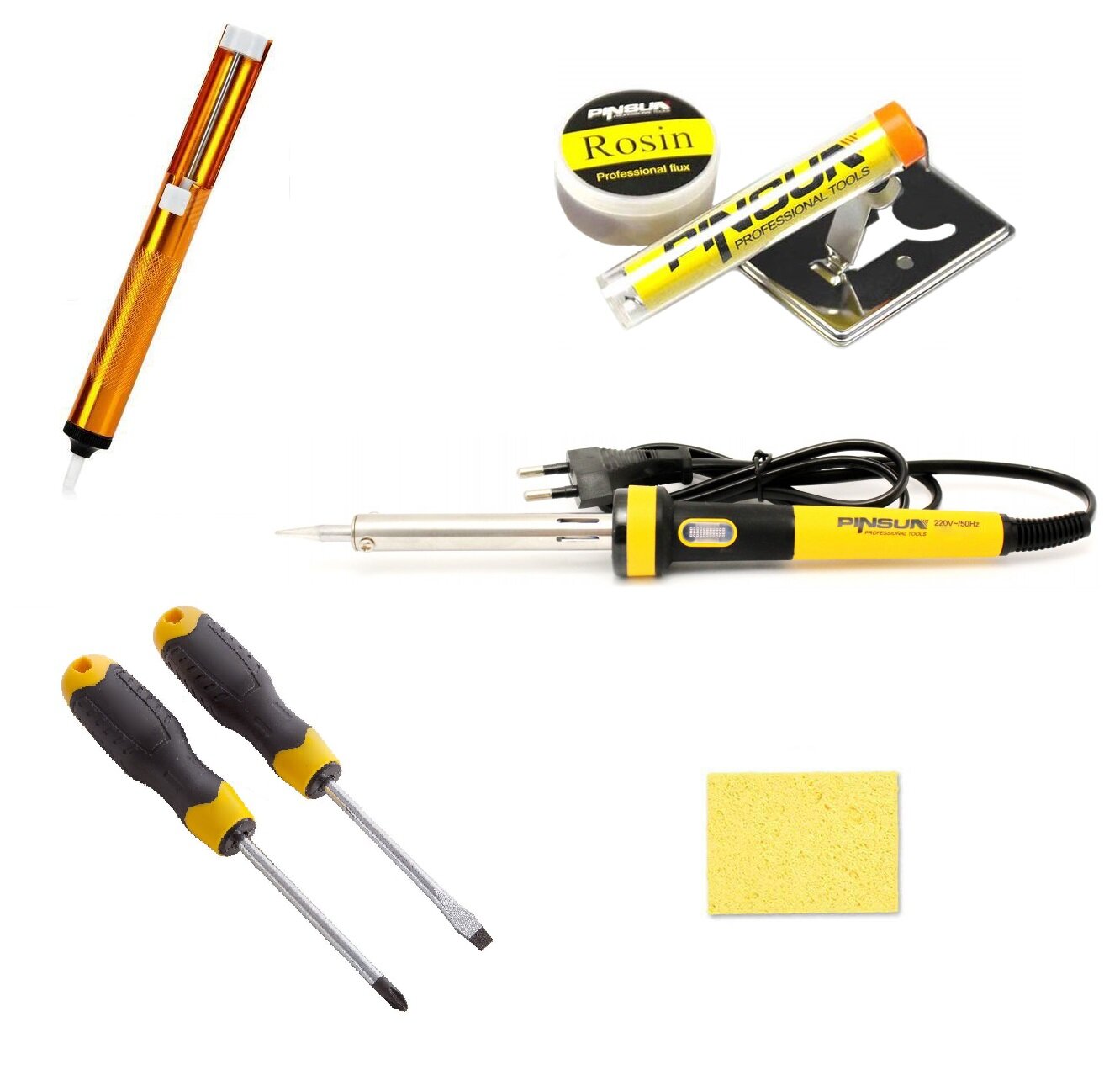 Набор для пайки ( Паяльник, 2 Отвертки, Канифоль, Оловоотсос, Подставка, Ткань для чистки жала) Pinsun PS-640 8