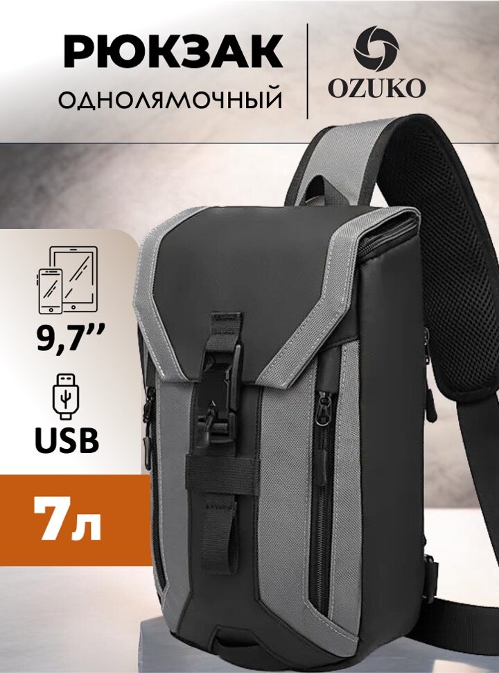 Рюкзак однолямочный Ozuko 9334 Grey интересное:
