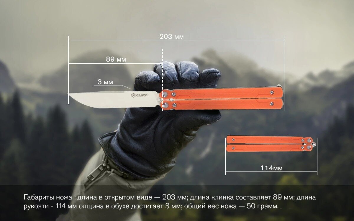 СохранитьНож бабочка складной туристический тактический GANZO G766 оранжевый для рыбалки охоты выживания интересное: