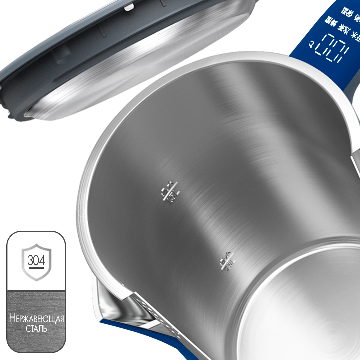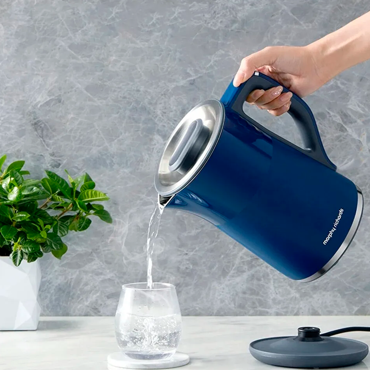 Электрочайник Morphy Richards MR6070 1.5L Stainless Steel Constant Temperature, 4 Gear Temperature Adjustment Real-time Temperature Display Intelligent Insulation Double-layer Anti-scalding, blue