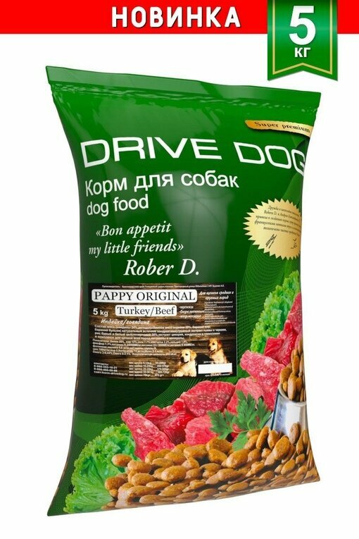 DRIVE DOG PAPPY ORIGINAL корм для щенков средних и крупных пород индейка с говядиной (5 кг)