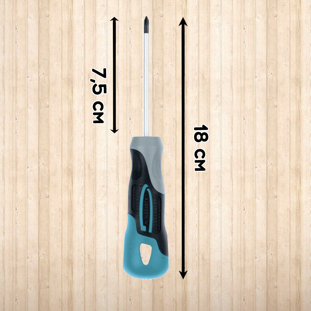 Отвертка крестовая GROSS PH0 x 75 мм S2 трехкомпонентная рукоятка