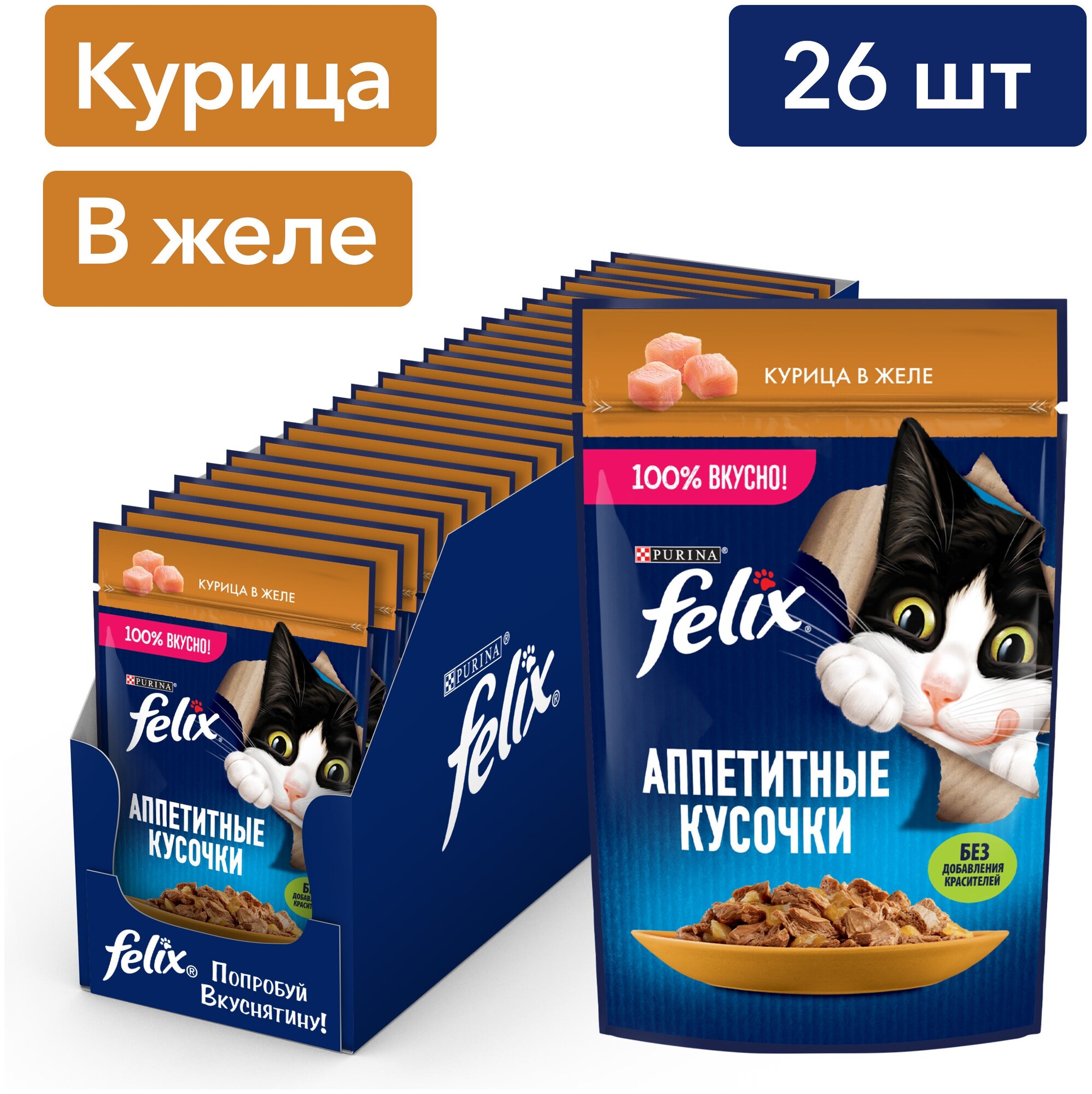 FELIX аппетитные кусочки для взрослых кошек с курицей в желе пауч (75 гр х 26 шт)