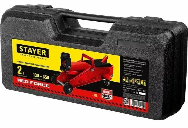 Домкрат подкатной для легковых а/м в кейсе STAYER R-28 2т 130-350мм , RED FORCE интересное: