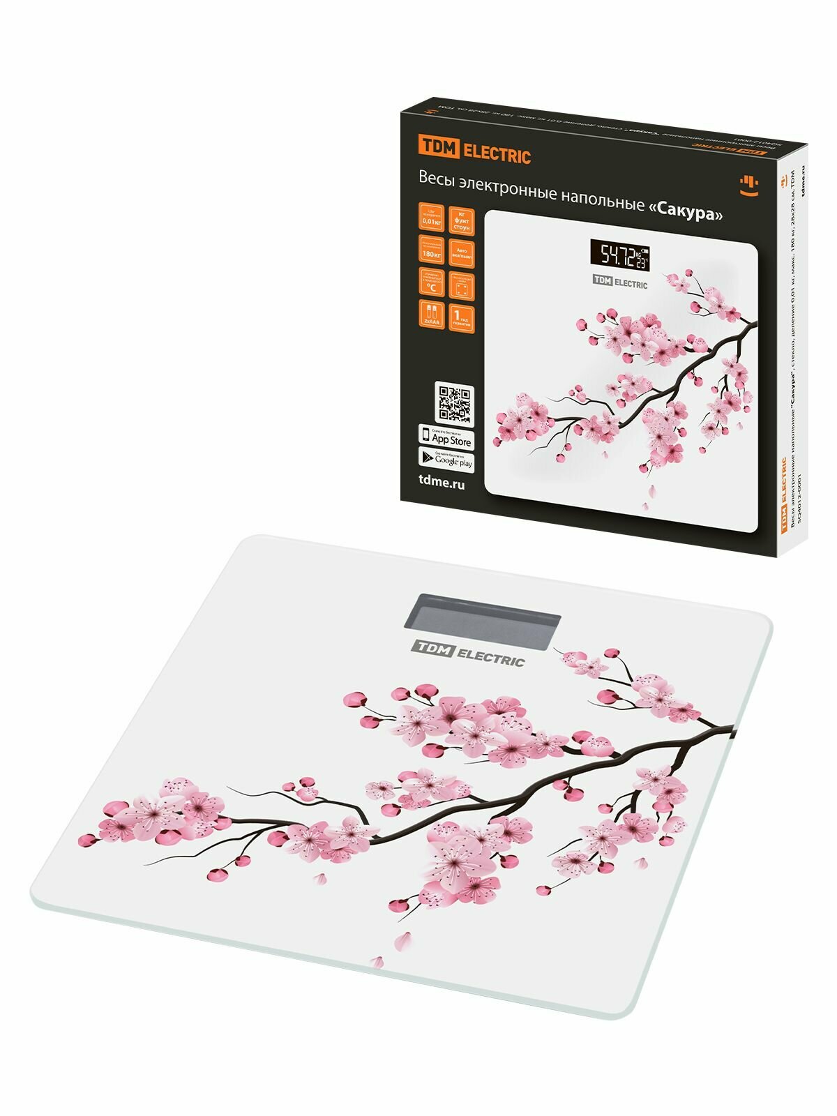 Весы электронные напольные "Сакура", стекло, деление 0,01 кг, макс. 180 кг, 28х28 см, TDM SQ4012-0001