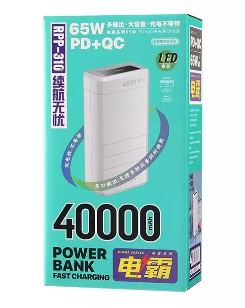 Внешний аккумулятор универсальный Remax RPP-310 40000 mAh Dinba series Super Fast Charg 22.5W/PD65W/QC power bank (USB:5V-2.4A Max) Белый