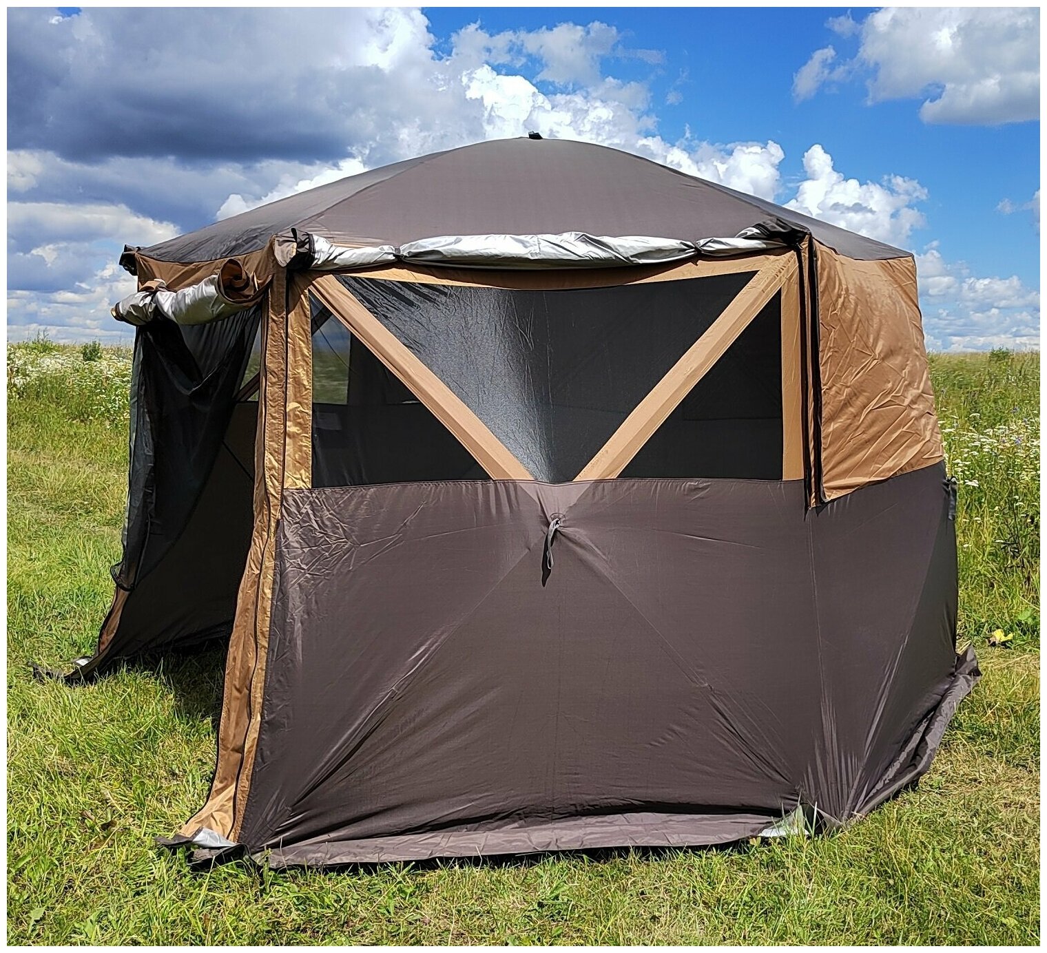 Комфортный шатер-беседка 360*360*215 см шестиугольный для отдыха в походе, в кемпинге, на природе или даче. 1936