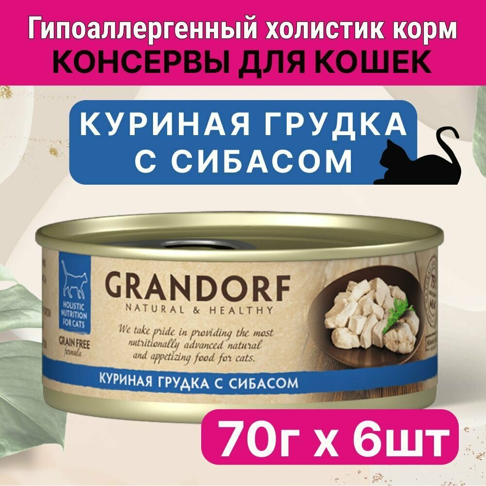 Консервы для кошек Grandorf Holistic Куриная грудка с сибасом, 70 г х 6 шт.