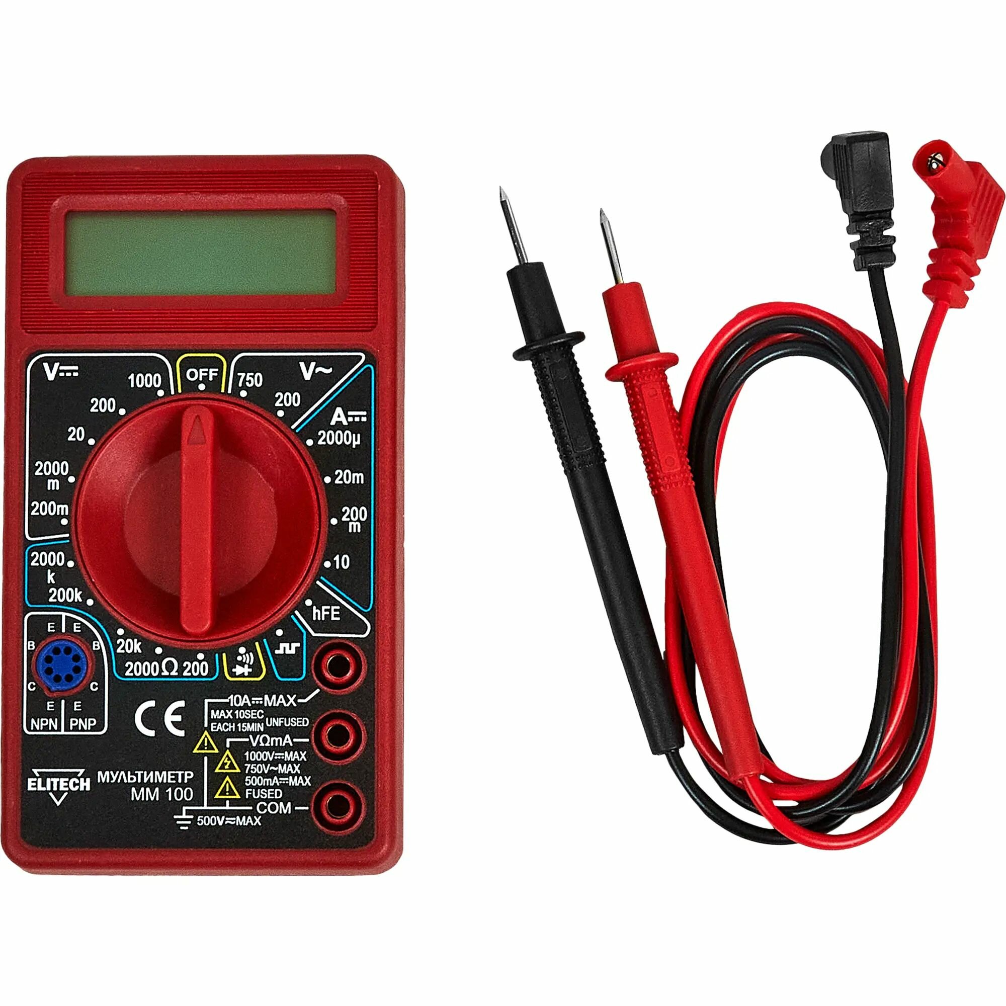 Мультиметр ELITECH ММ 100 пост.1000в/перем.750в жкдисплей кол-во измер.2/1сек индик.перегрузки кор интересное: