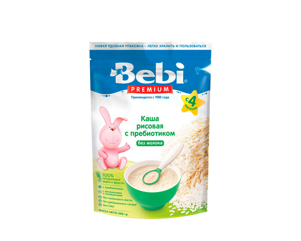 BEBI PREMIUM Каша Рисовая Низкоаллергенная с Пребиотиками б/м {с 4 мес.} 200г