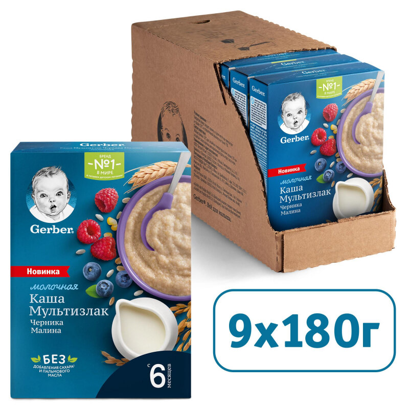 Каша молочная Gerber мультизлаковая с черникой и малиной 180г интересное: