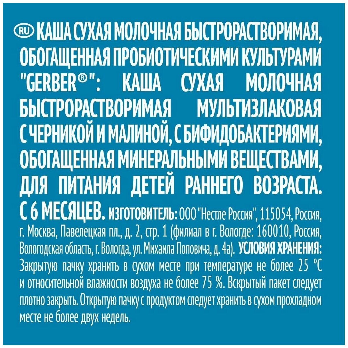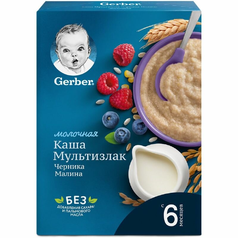 Каша Gerber молочная мультизлаковая с черникой и малиной, с 6 месяцев