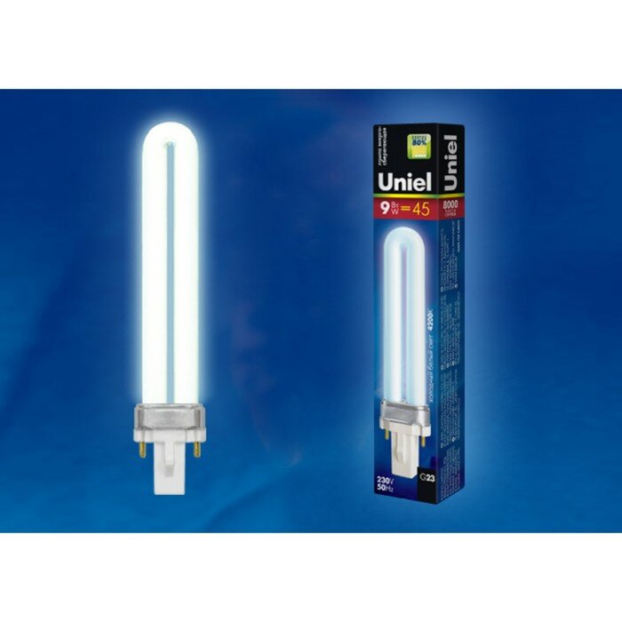 Лампа люминесцентная Uniel UL-00006001, G23, PL, 9 Вт, 4000 К