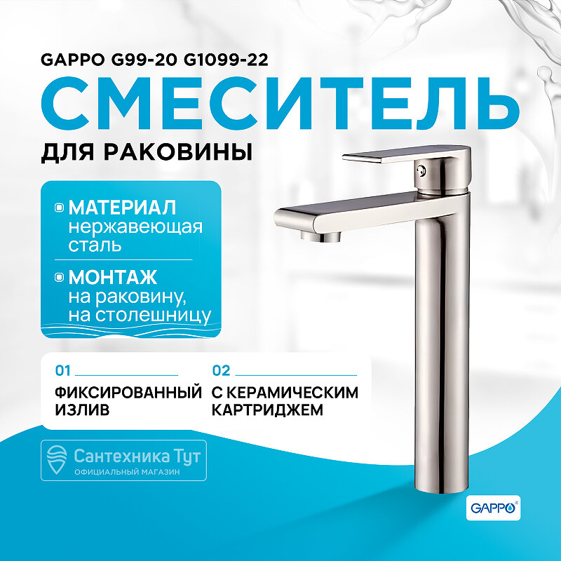 GAPPO G1099-22, Смеситель для раковины (нержавеющая сталь) (гаппо)