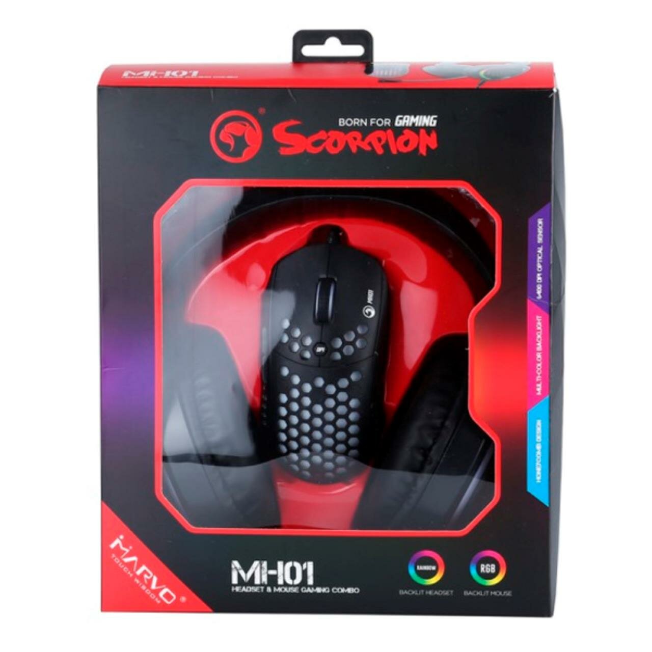 Игровой набор Marvo MH01BK: мышь проводная, гарнитура с подсветкой RGB для ПК