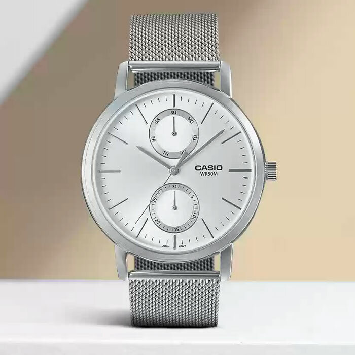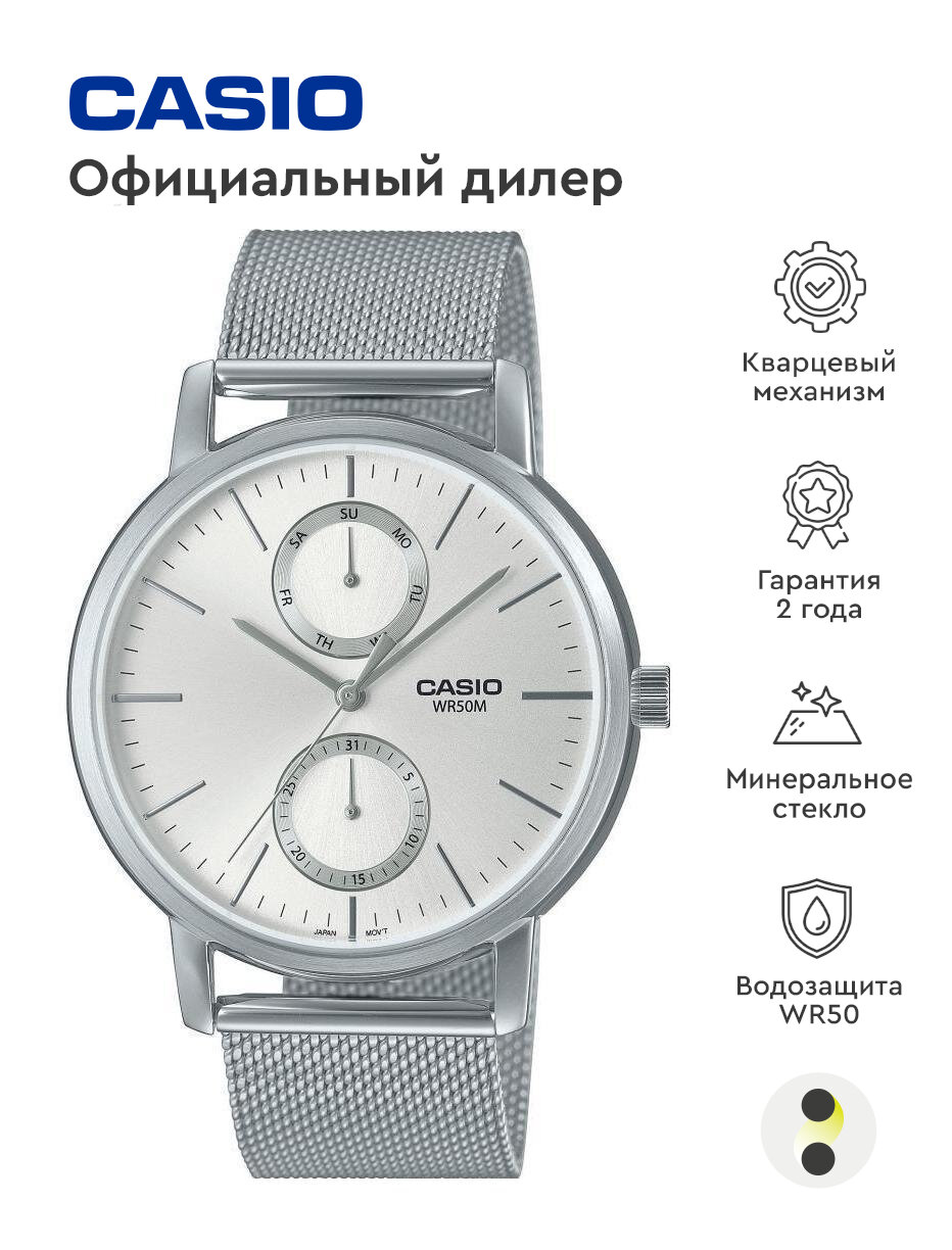 MTP-B310M-1A Casio наручные часы кварцевые WR50 (5 атм) мужские серебряный, черный отображение числа минеральное стекло