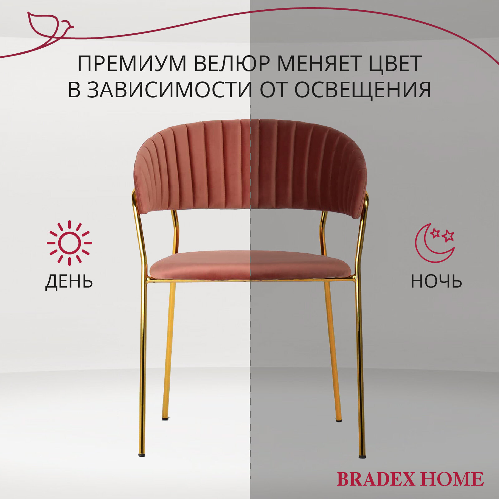Стул Bradex Turin винный, ножки золото (FR 0715)