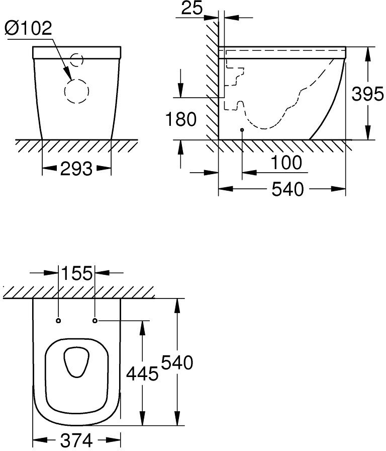 Напольный приставной безободковый унитаз Grohe Euro Ceramic (без сиденья) 39339 000 (39339000)