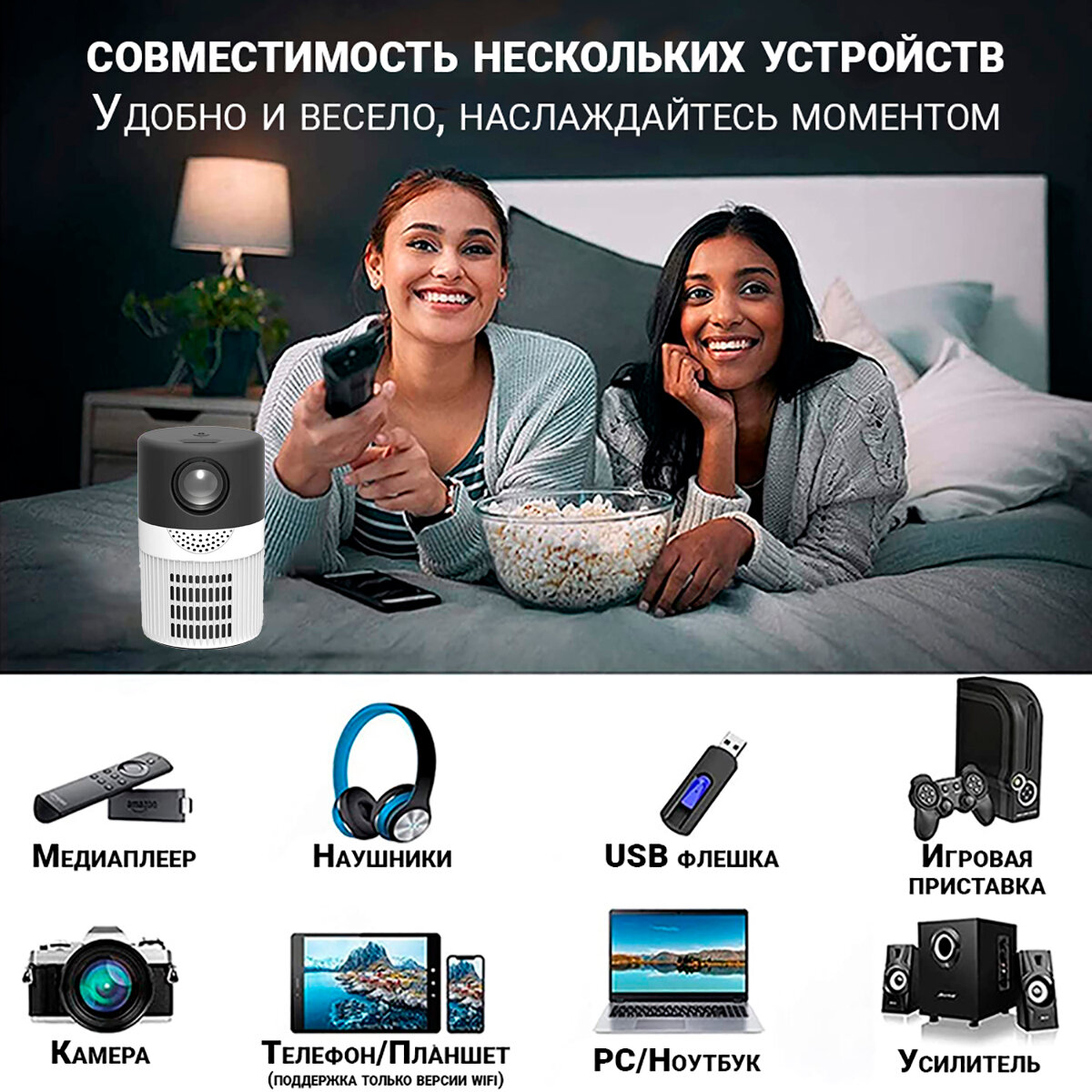 Проектор мультимедийный Unic T400/ Портативный светодиодный видеопроектор / Домашний кинопроектор для фильмов и дома интересное: